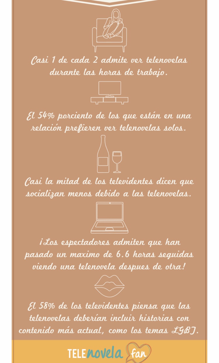 TelenovelaFan.com llevó a cabo una encuesta que cubrió 3,500 personas para descubrir hasta donde llega la pasión de los Latinos por las telenovelas. Los resultados revelaron que 1 de cada 3 (41%) cree que debería haber un día festivo solo para ver telenovelas!