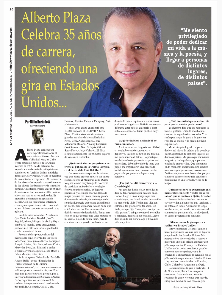 Alberto Plaza comenzó su carrera profesional sobre el escenario del famoso Festival de Viña Del Mar, en Chile; frente al temido público de la Quinta Vergara en 1985, desde entonces ha logrado acumular más de mil quinientos conciertos en América Latina, múltiples discos de Oro y Platino, y toda la maestría de un cantautor excepcional. Al transcurrir de los años se ha logrado convertir en uno de los pilares fundamentales de la música hispana. Un sitial merecido en sus 35 años de vida sobre los escenarios. Alberto tiene el secreto para cautivar multitudes. Es imposible desconocer su aplaudido talento. Con sus magistrales interpretaciones y composiciones, este reconocido artista chileno continúa enamorando a su público.