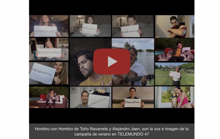 Estoy sentado en mi estudio de grabación, que se encuentra al lado de mi casa, tratando de entender todo lo que estaba sucediendo en esos momentos. Esta pandemia ayudó mucho a enfocarnos, ya que nos encontrábamos aislados. De a poco comencé a enterarme que familiares y amigos cercanos comenzaron a enfermarse del COVID 19, un amigo muy querido y mi abuela murieron a causa del virus. Escribí la canción primero para liberarme de toda esta incertidumbre que me tenía preso, y segundo, para dejar un mensaje positivo a la gente que no sabía que hacer, durante ese tiempo caótico. En medio del proceso se incorpora Alejandro Jaen, y también colabora con la composición; logramos un gran resultado. Siempre hemos tenido enlaces con Telemundo quienes en ese momento buscaban una canción para la campaña que iban a lanzar, así que sometimos el tema a consideración del departamento de marketing, quienes al final de algunas deliberaciones escogieron “Hombro con hombro” para que sea la canción oficial de la campaña #juntospodemos.