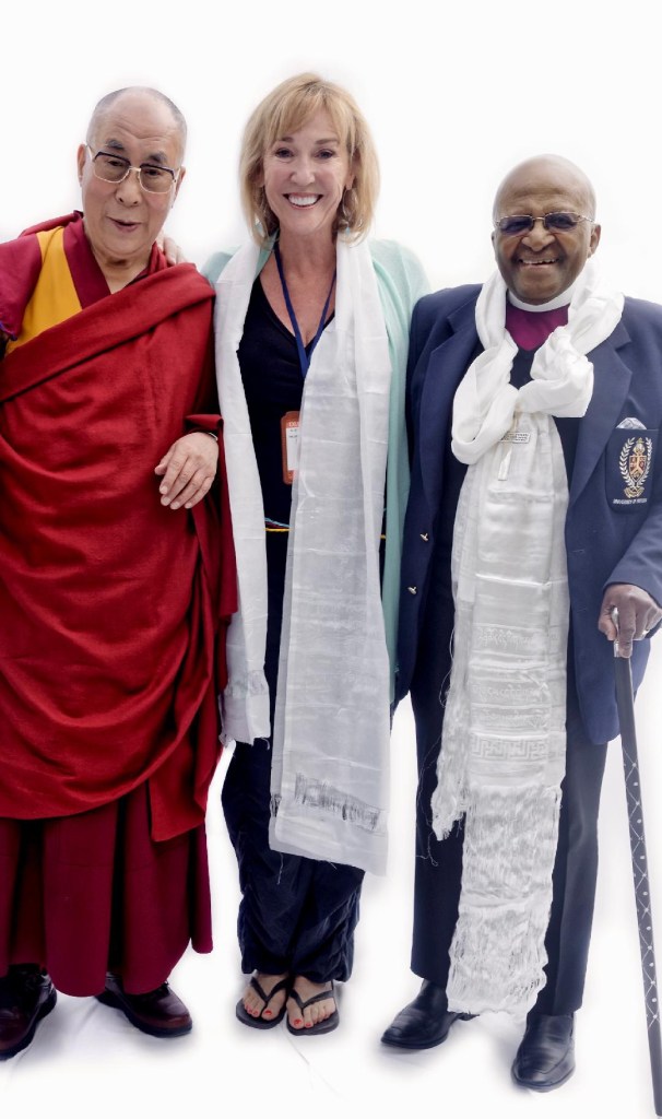 Tuve mucha suerte suerte, un amigo mío llamado Doug Abrams, quien es un ‘bestseller author’ él me llamó durante Thanksgiving y me dijo : “ Tú vas a amarme por siempre”, yo le respondí : “Igual te voy a amar, pero igual dime a que te refieres”. Él prosiguió preguntándome si quería ir a la India a dirigir un documental basado en “El Libro de la Felicidad” (The Book of Joy), estaríamos en el complejo residencial del Dalai Lama durante una semana, allí también se encontraría el Arzobispo Desmond Tutu, por supuesto que no me negaría. Ya había trabajado con el Arzobispo Tutu, porque cuando era reportera yo cubría eventos de justicia social y cuando me enteré de la esclavitud moderna, me asombré de que aun existiera la esclavitud en el mundo. Empezamos una organización para luchar en contra, y el arzobispo se encontraba entre los miembros de la junta directiva, así que ya lo conocía, pero no conocía a su santidad el Dalai Lama.